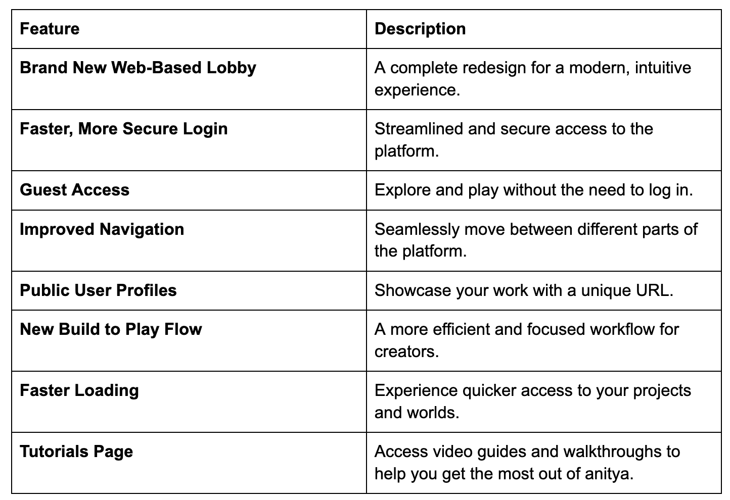 The new web-based lobby is designed to provide a faster, more secure, and intuitive experience for both creators and players. The login process has been streamlined, and for those who just want to explore, a new guest access feature allows users to dive into the world of anitya without needing to create an account. This frictionless entry point encourages exploration and discovery, making it easier than ever for new users to experience the power of the platform.