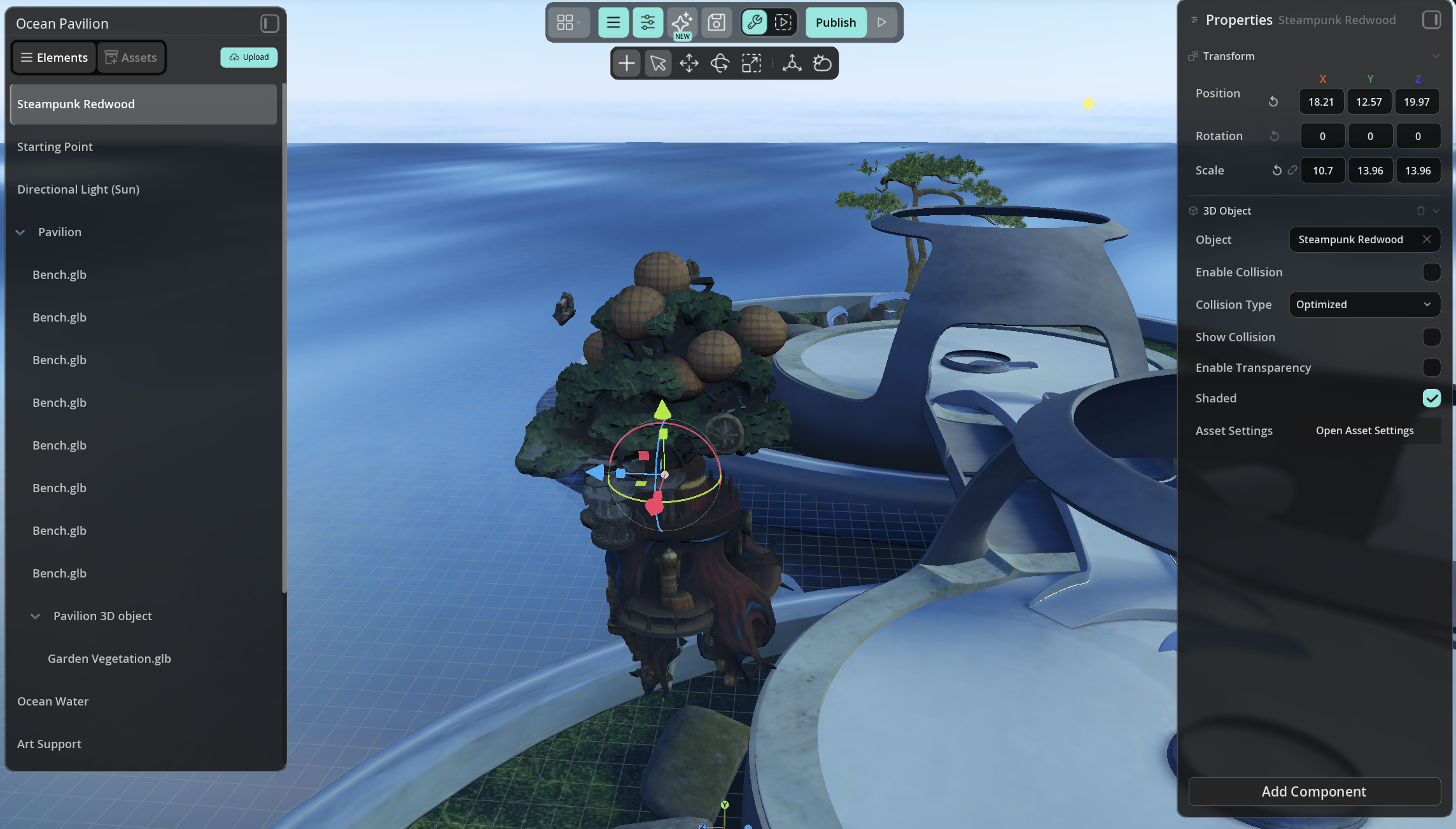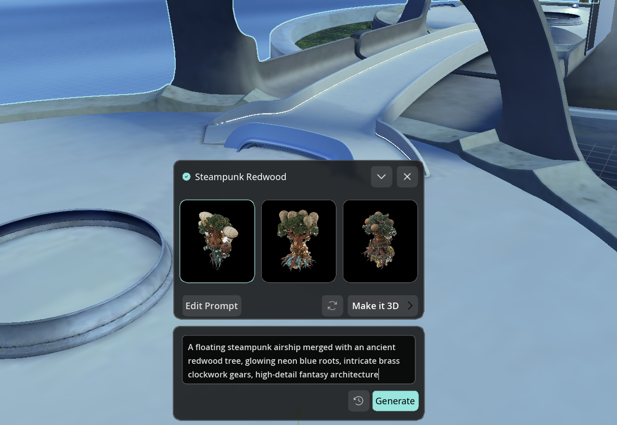 End-to-end 3D creation platforms combine AI generation with a scene editor and a publishing layer. You generate the asset, drag it into a scene, and share a live URL — all in one place.